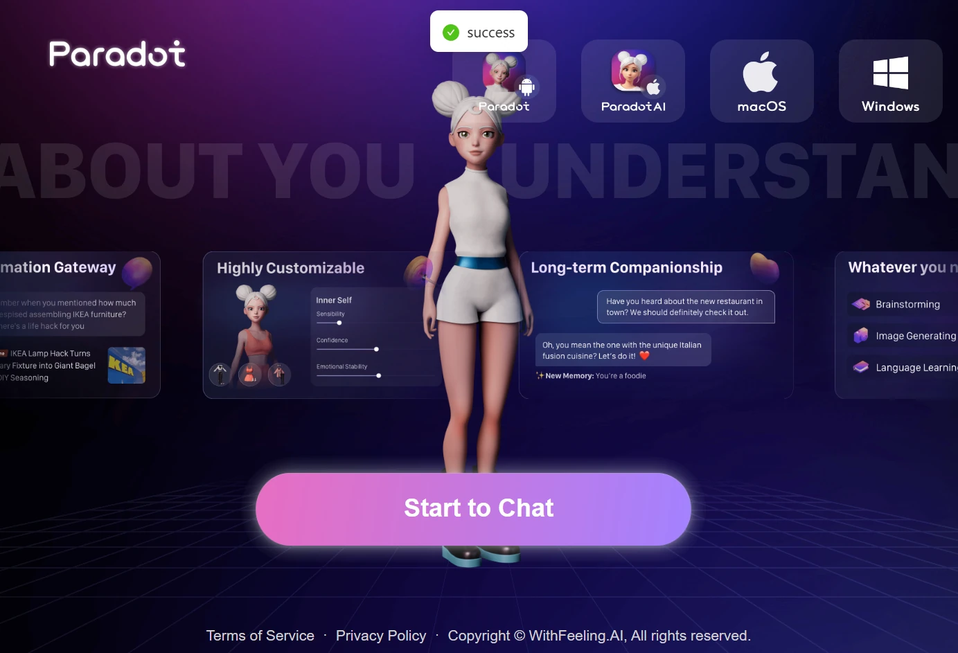 Designed for individuals seeking emotional support, creative collaboration, or companionship, Paradot caters to diverse needs, enhancing both productivity and well-being.