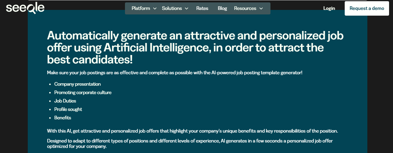 • AI-Driven HR Transformation: Seeqle is an innovative HR technology platform powered by Artificial Intelligence, reshaping talent acquisition.It provides a comprehensive solution for organizations looking to optimize and streamline their hiring processes.