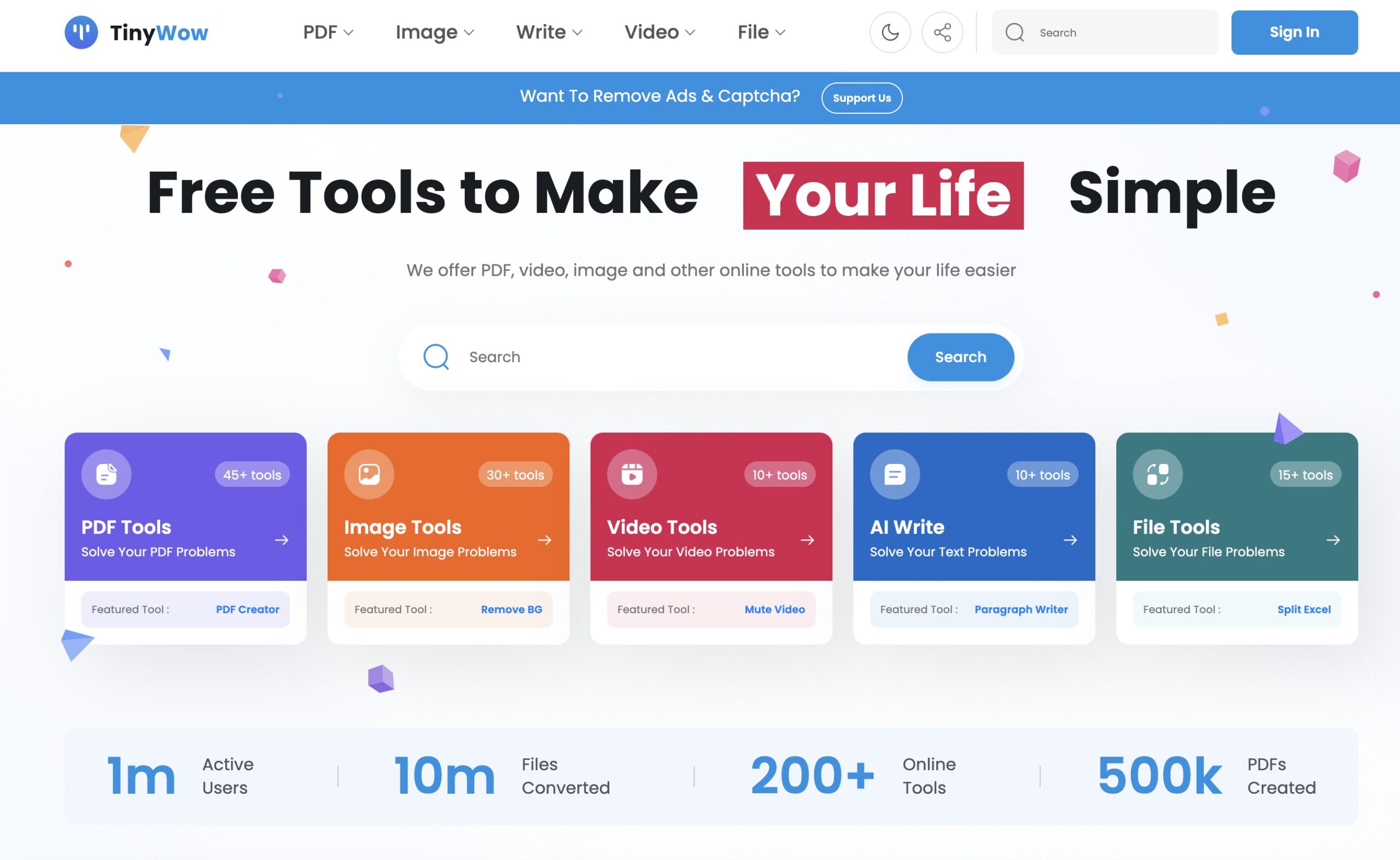 TinyWow offers a versatile solution for everyday digital challenges. With features like PDF manipulation, video-to-GIF conversion, and AI writing tools, it caters to modern users without sign-up requirements or limitations.